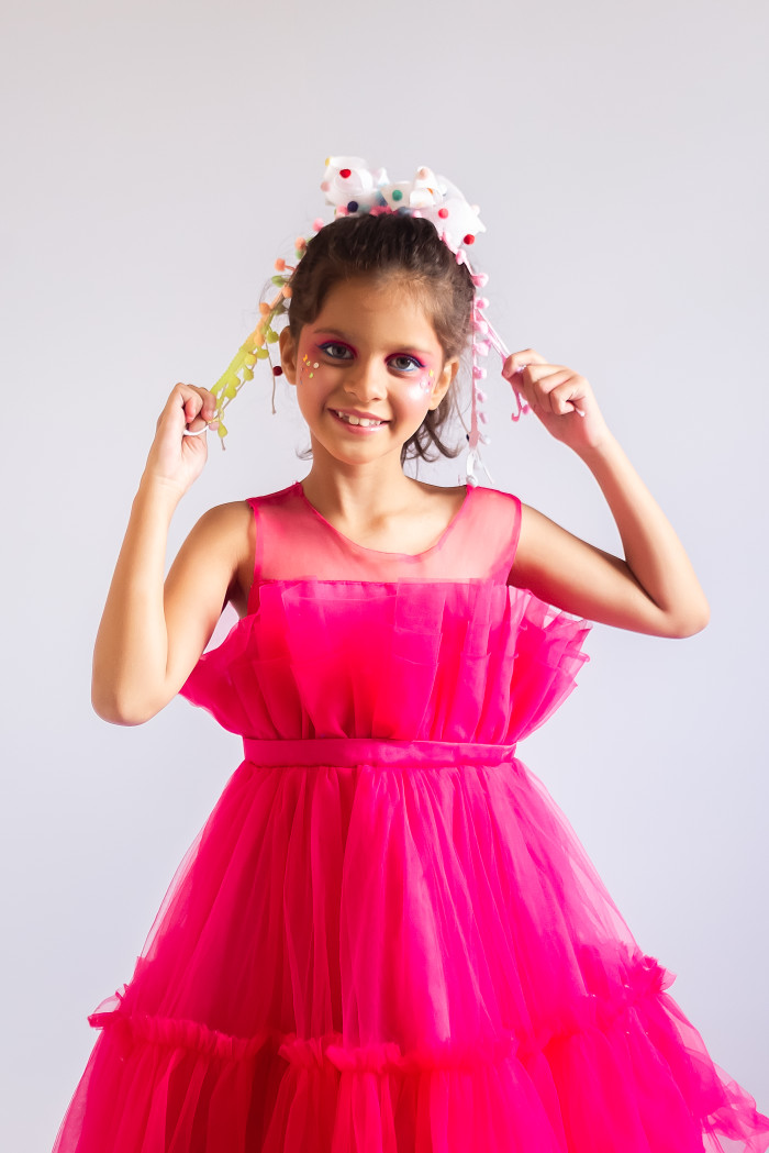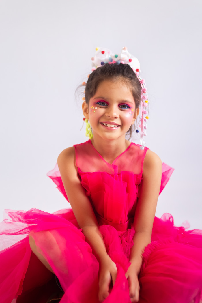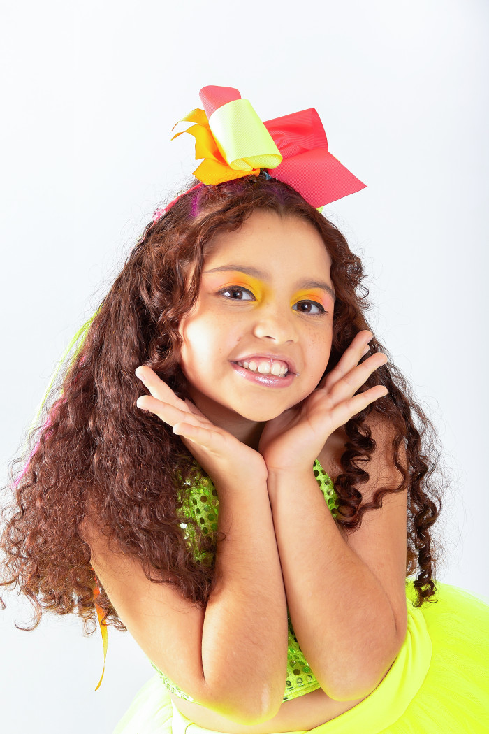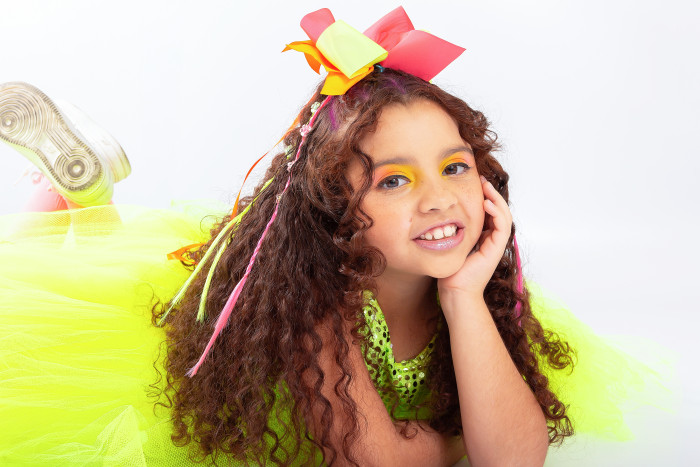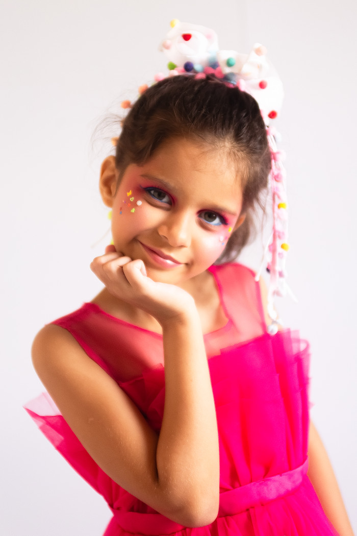 Foi assim que surgiu a proposta de um editorial clean, alegre e focado na beleza das cores, com destaque especial para a maquiagem e o figurino das pequenas modelos.
