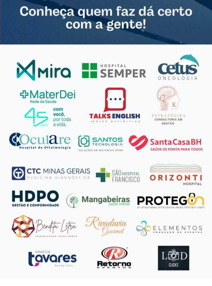 A força do evento também se reflete no apoio de patrocinadores que acreditam na importância de iniciativas como esta. Instituições renomadas como Hospital Semper, Rede Mater Dei, Santa Casa BH, Orizonti Hospital, Oculare, Mira, Cetus Oncologia, entre outros, reforçaram seu compromisso em apoiar projetos que estimulam a inovação, o conhecimento e a evolução contínua na saúde.
