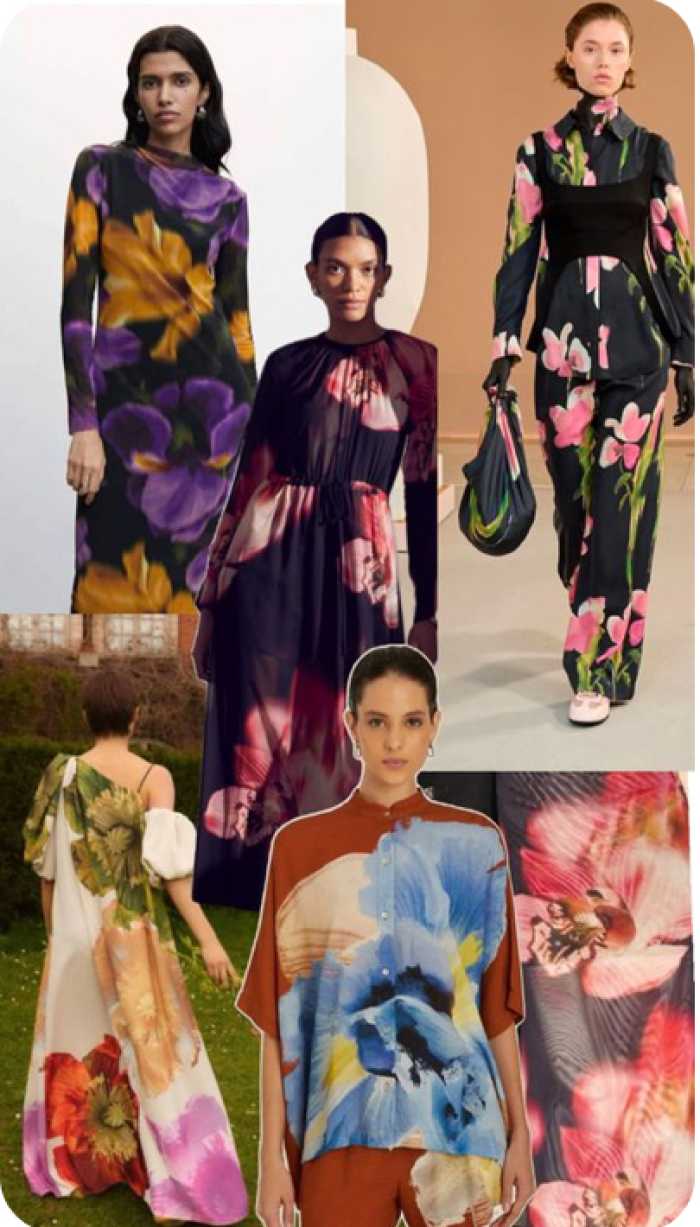 O ano de 2025 está sendo marcado pelo retorno do maximalismo na tendência de estampas florais, além do retorno de estampas clássicas. Também o retorno do animal print, mas com o destaque para a estampa CowPrint (estampa de vaca), e estampa de Couro de Cobracom muita textura, abordagem mais sofisticada e cores vibrantes, e é claro que dentro do animal print (os clássicos) estampa de onça e zebra que nunca saem de moda, eu particularmente amo uma estampa de “oncinha”.Nos florais principalmente para o verão em 2025 retorna o floral max e o floral inspirado na antiga tapeçaria, que te possibilita a criar um visual impactante e com muita personalidade.