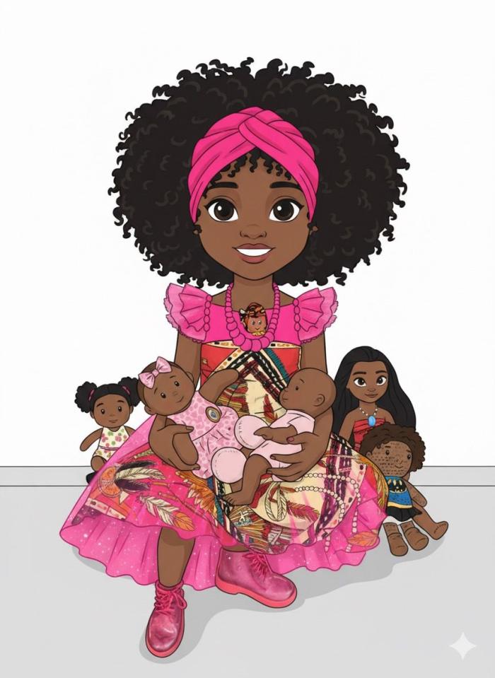 Durante muito tempo, a infância negra foi retratada de forma invisível ou estereotipada. Mas hoje, essa realidade está mudando! As bonecas de pele escura, os cabelos crespos com orgulho, os nomes africanos e as roupas coloridas cheias de identidade estão ganhando destaque. Cada passo é uma conquista para que todas as crianças se vejam representadas, sintam-se valorizadas e saibam: “Eu posso ser o que eu quiser!”