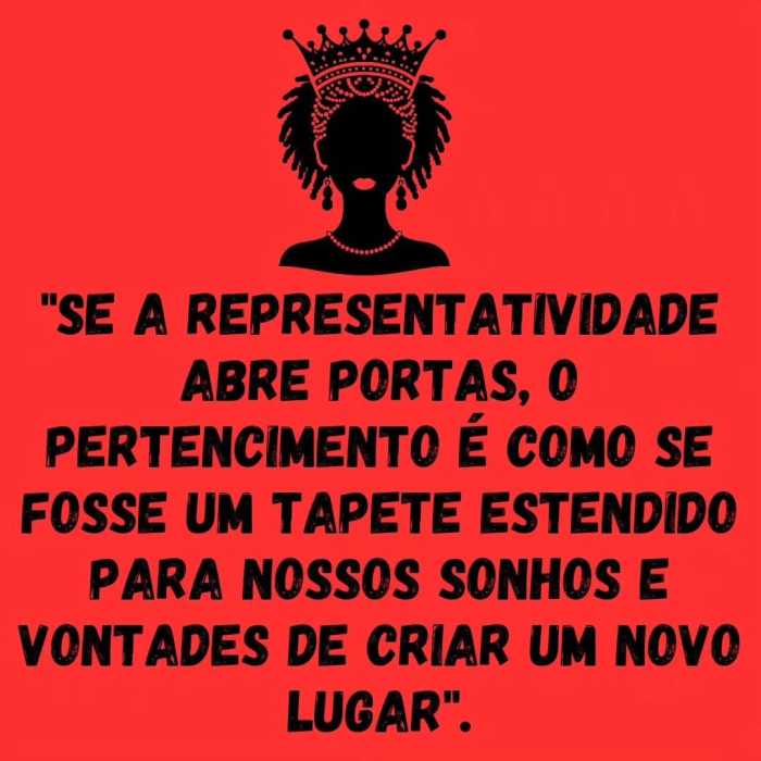 "Se a representatividade abre portas, o pertencimento é como se fosse um tapete estendido para nossos sonhos e vontades de criar um novo lugar".