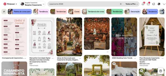 Buscar referências é natural. Criar uma pasta de inspirações ajuda a transformar sentimentos em imagens, cores e atmosferas. O cuidado está em não confundir inspiração com comparação. O casamento deve refletir a identidade do casal, sua história e seus valores — não reproduzir cenários alheios.