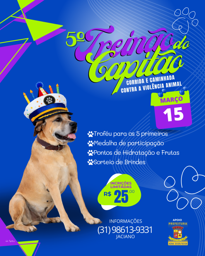 Foi desse movimento que nasceu o Treinão do Capitão, projeto idealizado e liderado por Jaciano, que une esporte e conscientização em Mateus Leme. Em março, a cidade recebe a 5ª edição do Treinão do Capitão, consolidando a iniciativa como um dos principais eventos locais voltados à causa animal.