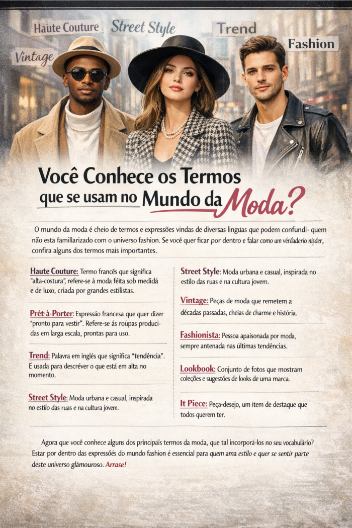 Nesta matéria especial, reunimos os principais termos usados no mundo da moda, explicados de forma clara e acessível.