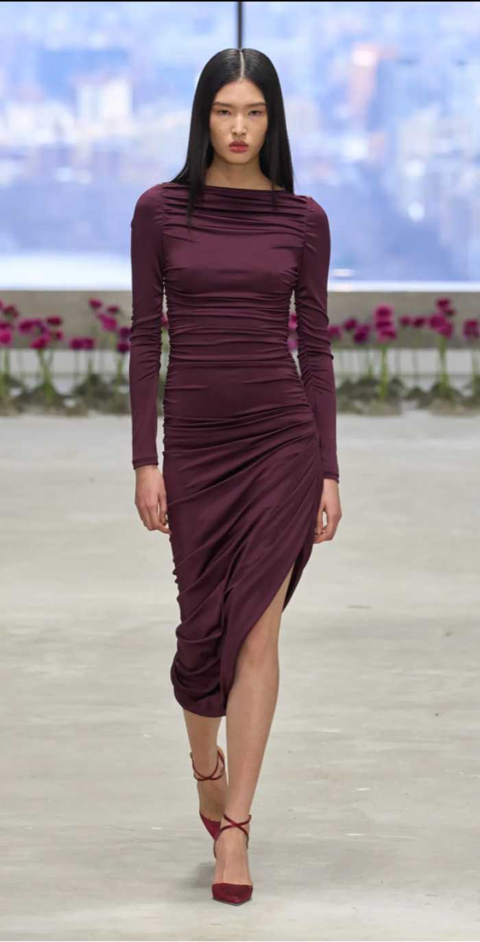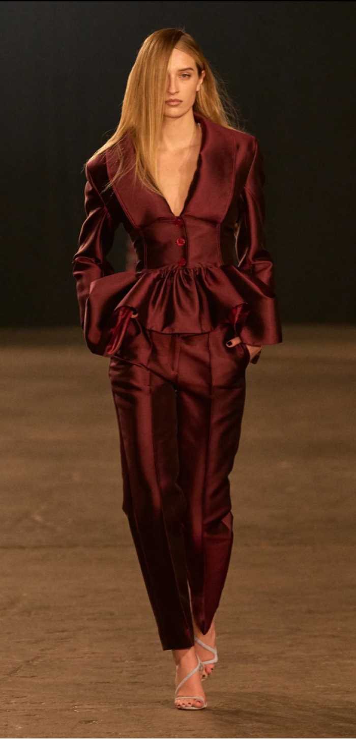 A cor Cherry foi destaque em desfiles como o da Gucci, Ferragamo e Artemisi, e como vemos a passarela dita a moda que vai para ruas, e as coleções das lojas de departamento estão cheias dessa tendência. Mas não será somente o Cherry Red o único tom de vermelho para o Outono/ Inverno, veremos também o tom Burgundy, que para nós brasileiro é o famoso Borgonha a cor da cereja quando está bem madura. A nomenclatura Burgundy vem da região francesa, é a combinação do vermelho com a púrpura, muito presente na coloração de vinhos. As passarelas da moda de Outono/ Inverno 2025 teve as marcas como Carolina Herrera, Altuzarra, Khaite e Christopher John Rogers que apostaram no Burgundy.