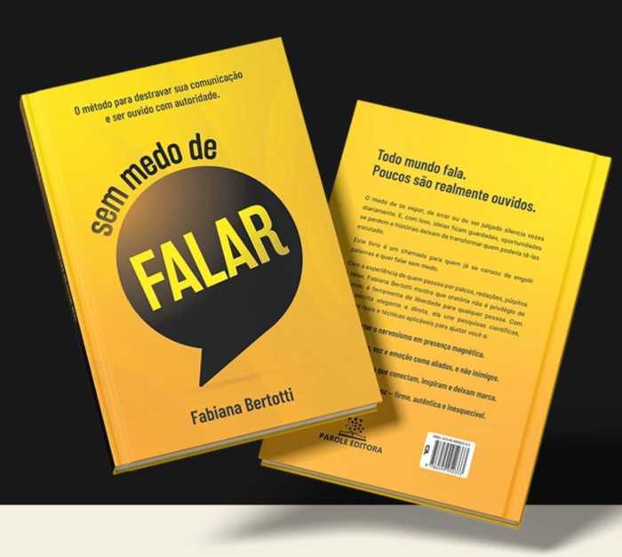 Fabiana Bertotti com LiVro Sem medo de falar O medo de falar em público é frequentemente associado à falta de preparo ou conhecimento sobre o assunto. No entanto, segundo a especialista em oratória Fabiana Bertotti, o verdadeiro obstáculo costuma estar ligado ao medo do julgamento. Quando uma pessoa se expõe diante de outras, o organismo reage como se estivesse diante de uma ameaça real, acionando mecanismos de defesa que podem provocar ansiedade, bloqueio mental e insegurança.