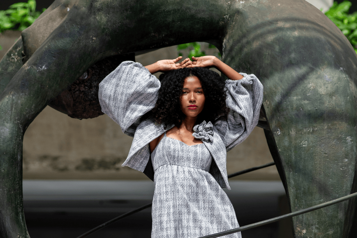 Imagem colorida de modelo posandoGabriella Santana posando para sessão do Metrópoles Catwalk