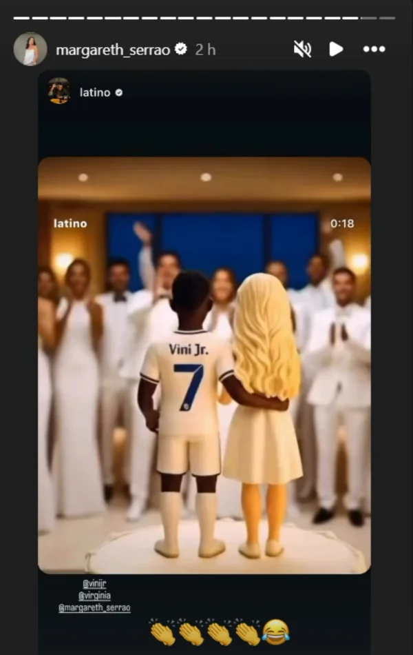 Na publicação original, Latino escreveu: “Quando o amor é BRABO, até a IA sente o impacto. Latino Casamento do Brabo! Onde Vini Jr. e a Virginia são os protagonista da cena”.