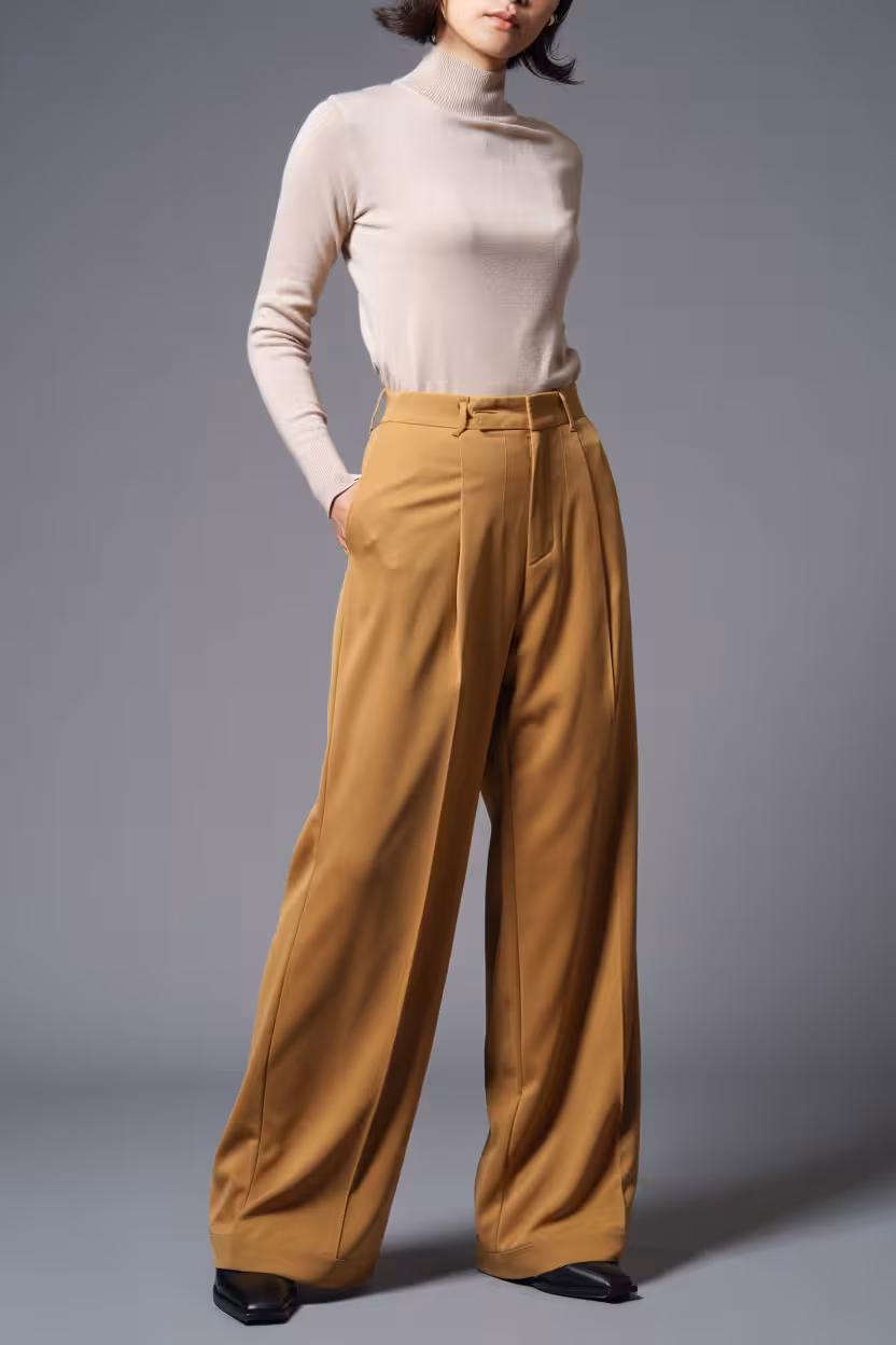 No inverno de 2025, a calça cáqui surge como uma alternativa moderna ao jeans e às calças escuras. Seu tom neutro é ideal para equilibrar as composições com casacos pesados, tricôs de textura macia e blusas de gola alta em tons pastel.